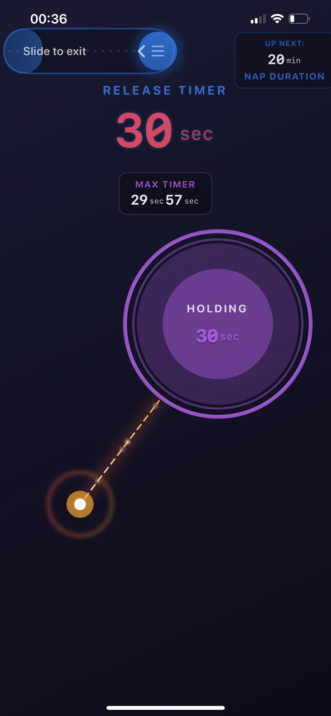 • Three customizable timers: Release timer (starts when you let go), Nap duration, and Max safety timer